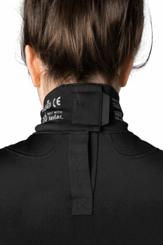 This all-in-one piece features cut-resistant materials in the neck area as well as a form-fitting